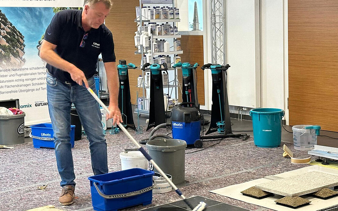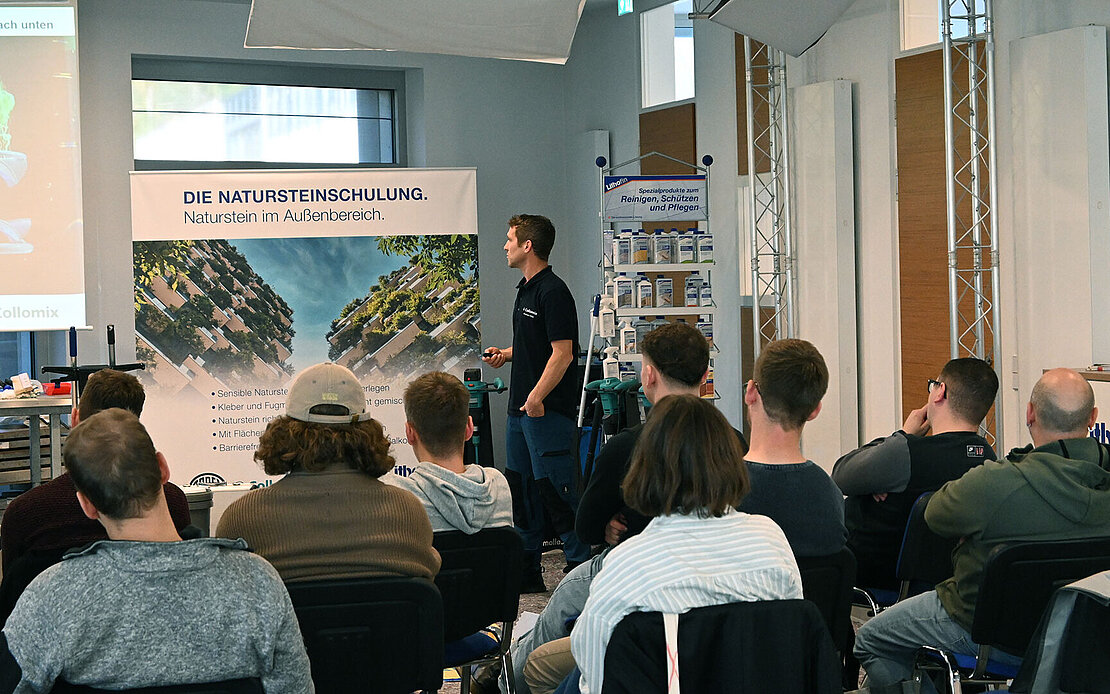 Im Rahmen dieses eintägigen Seminars wurden unter anderem die Themen Natursteinkunde, barrierefreie Terrassen, Abdichten und der Einbau von Drainagesystemen, das Anmischen bauchemischer Produkte und das richtige Reinigen, Schützen und Pflegen thematisiert.