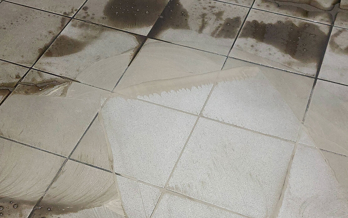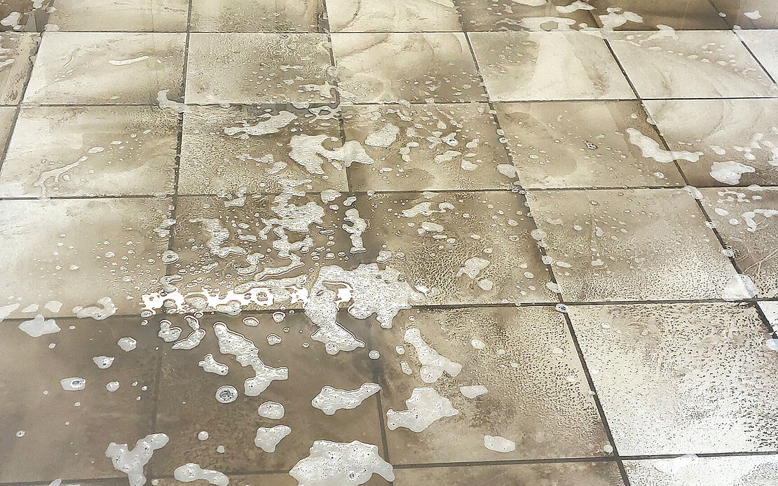Bei der Reinigung von Fliesenbelägen kommt es sehr stark auf die richtigen Produkte an. Wird dieser Grundsatz nicht beachtet, kommt es trotz regelmäßigen Reinigungsmaßnahmen schnell zu unansehnlichen Ablagerungen auf der Oberfläche. So geschehen in den Toilettenanlagen im Stadion des SV Sandhausen.