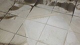 Im Rahmen einer Grundreinigung kam Lithofin KF Intensivreiniger zum Einsatz, um bestehende Pflegemittelrückstände zu entfernen. Anschließend wurde der gesamte Belag mit Lithofin MN Zementschleier- und Rostentferner abgesäuert – so wurden auch Kalkrückstände und Urinstein restlos entfernt.