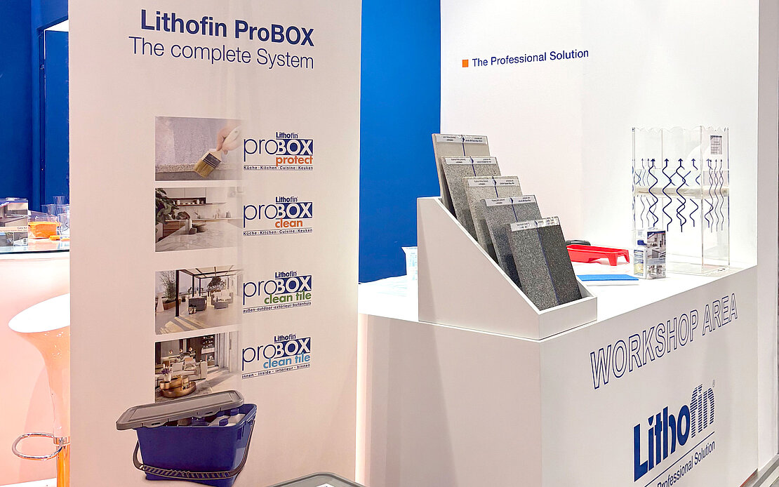 Im Focus stand das Lithofin System zum Reinigen, Schützen und Pflegen, das mit den vier verschiedenen Lithofin ProBoxen die ideale Lösung für jeden Verarbeiter bietet.