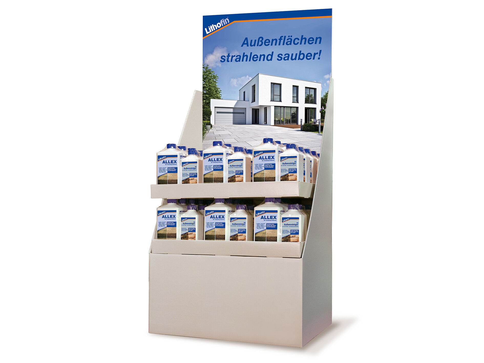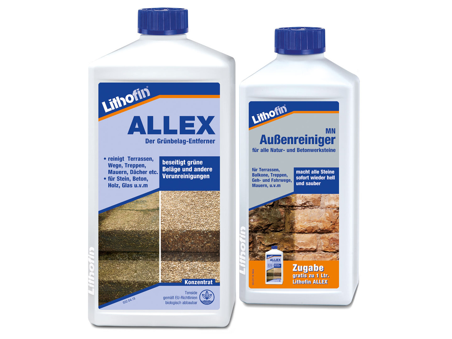 Mit der Gratis-Beigabe Lithofin MN Außenreiniger* sehen Sie in kurzer Zeit Erfolge. Die Flächen werden in Minutenschnelle sichtbar hell. So rücken Sie selbst hartnäckigen Verschmutzungen zu Leibe. Denn dieser Spezialreiniger wirkt gründlich und gleichzeitig materialschonend. Er löst und entfernt dunkle und grüne Beläge und Ablagerungen, Stockflecken sowie dunkle Verfärbungen.