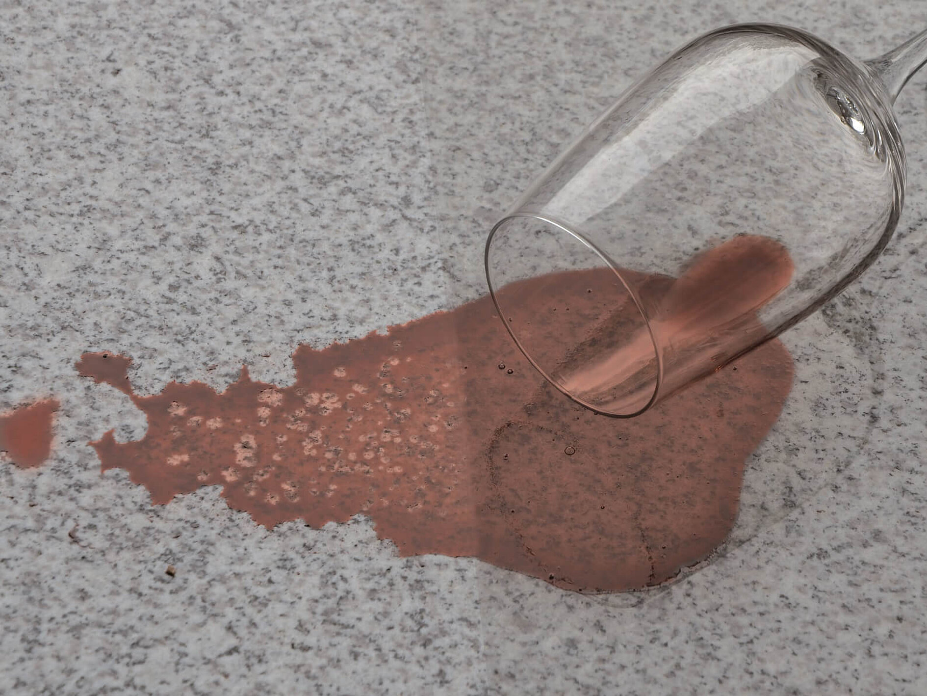 Rotwein lässt sich, wenn umgehend gehandelt wird, mit saugfähigen Papiertüchern selbst von einem unbehandelten Naturstein nahezu komplett aufnehmen. Wird jedoch das Missgeschick erst später bemerkt, ist der Rotwein in die Poren und Kapillaren eingezogen und unter Umständen bereits eingetrocknet. Die nicht flüchtigen Bestandteile des Weines, wie Gerbstoffe und Farbstoffe, haften an den Mineralien dann so stark, dass die Kraft des Wassers nicht mehr ausreichend ist. Insbesondere von ungeschützten Natursteinoberflächen lassen sich diese Flecken kaum noch mit klarem Wasser oder Spülmittelzusätzen entfernen.