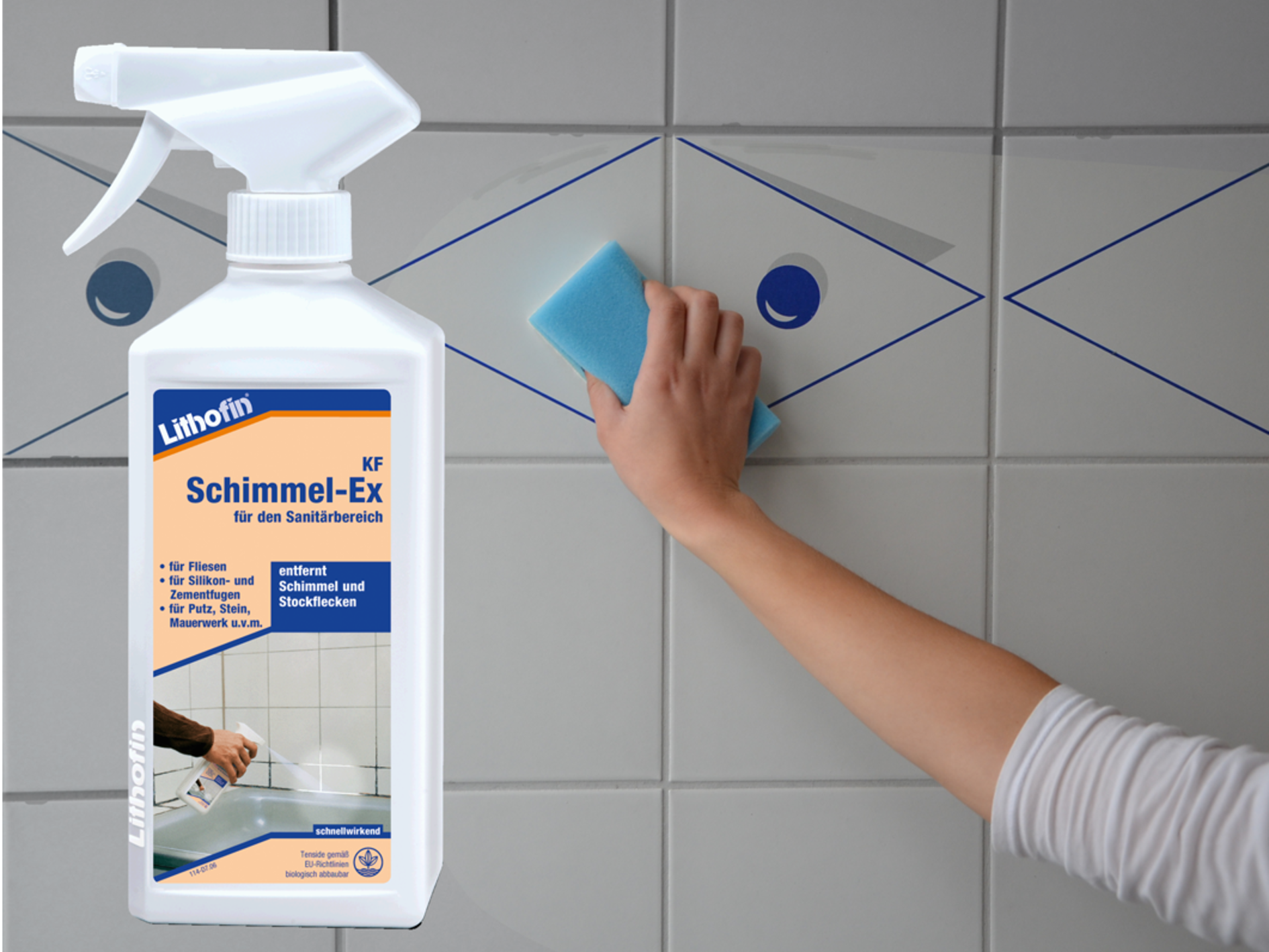 mit Lithofin KFSchimmel-EX * satt ein und spülen diesen nach