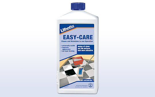 The surface is not damaged, but there was a film of care products on the surface, which has now been partially dissolved. Thoroughly clean the surface with Lithofin KF Intensive Cleaner. Lithofin EASY-CARE does not build layers or films and should therefore be used for regular maintenance.