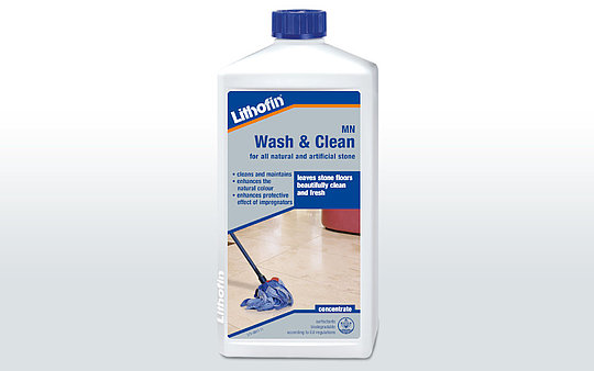 First carry out a basic cleaning with Lithofin MN Power-Clean. Regularly wipe the surface with a moist cloth in order to achieve a well maintained surface appearance. Always add one squirt of Lithofin MN Wash & Clean to the bucket of cleaning water to protect and maintain at once. After every fourth cleaning, touch the surface up with Lithofin MN Care-Sheen. Lithofin MN Care-Sheen protects and maintains sheen on all polished surfaces.