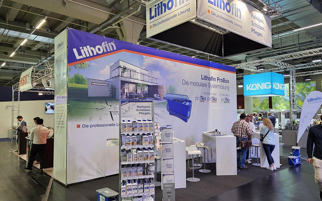 Pour Lithofin, c'était également l'occasion idéale de se présenter à des clients existants et potentiels et de mener des discussions intéressantes et des échanges personnels dans une atmosphère agréable. Sur le stand de Lithofin, tout tournait autour du nettoyage et de l'entretien corrects ainsi que des informations sur le traitement de protection optimal de la pierre naturelle, des blocs de béton, du terrazzo et bien plus encore. En outre, l'équipe a présenté le système innovant ProBox.