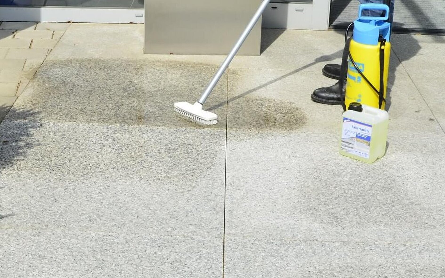 Après le temps d'action recommandé, lavez la surface avec de l'eau et une brosse.