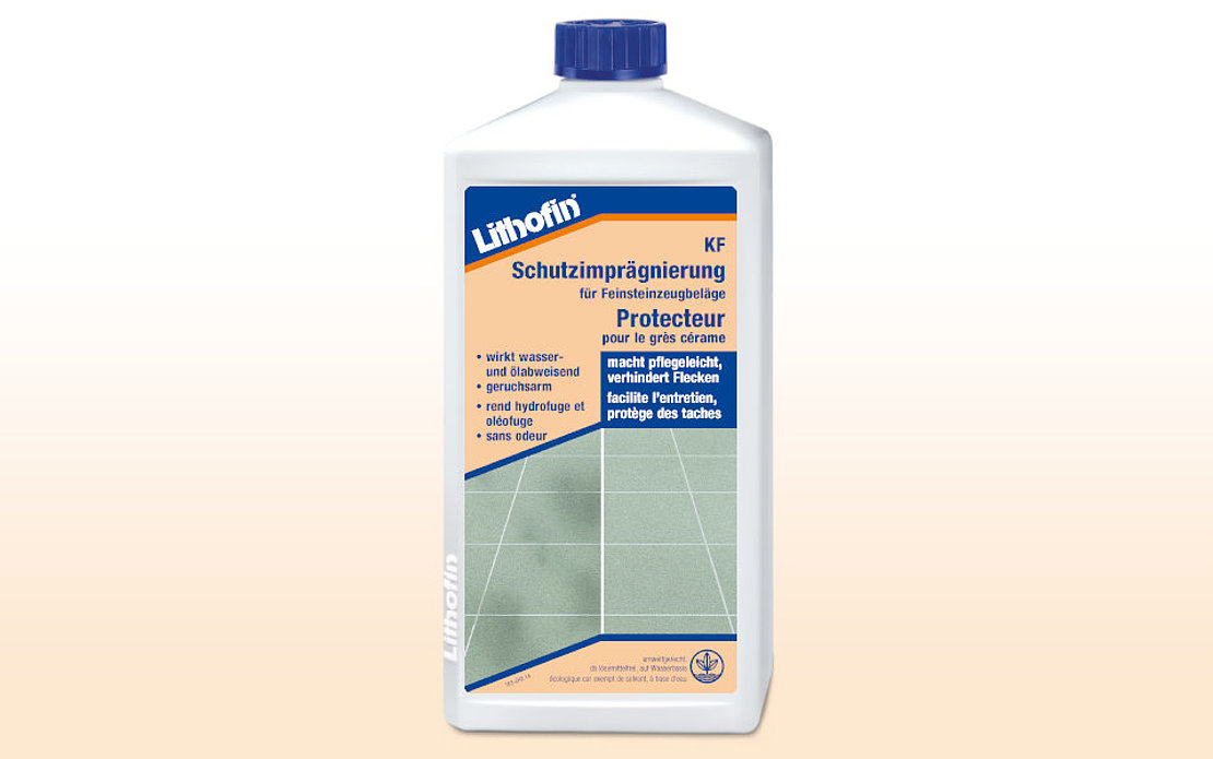 Apparemment, le produit d’entretien utilisé laisse des résidus qui s’accumulent à chaque lavage. Diluer Lithofin KF Nettoyant Intensif avec de l’eau à raison de 1:5 et appliquer sur la surface. Laisser le produit agir environ 20 minutes, brosser et rincer abondamment à l’eau claire. Pour l’entretien régulier, utiliser Lithofin KF Produit d’entretien.