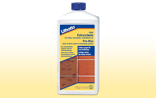 Pré-imprégnation pour une protection supplémentaire contre les taches d’huile et de graisse. A appliquer avant le traitement final avec Lithofin Cotto Wax-Finish.