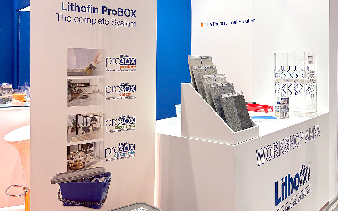 De focus lag op het Lithofin systeem voor reinigen, beschermen en onderhouden, dat met de vier verschillende Lithofin ProBoxen voor elke gebruiker de ideale oplossing biedt.