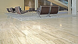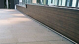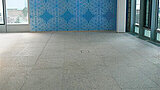 Als eerste behandeling werden kleverige resten verwijderd met Lithofin LÖSEFIX. Vervolgens werden resten van onderhoudsproducten snel en doeltreffend verwijderd met de alkalische speciaalreiniger Lithofin ASR.