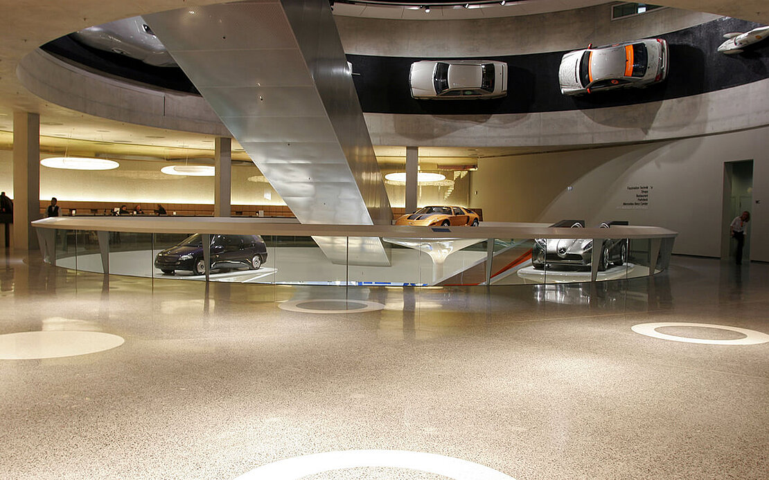 Het is het enige museum in de wereld dat 120 jaar automobielindustrie verenigt in één doorlopende tentoonstelling. De tentoonstellingsruimte is even uniek als de traditie van Mercedes-Benz : verspreid over negen niveaus ,met een totaaloppervlak van 16.500m², kunnen de bezoekers 160 voertuigen en meer dan 1.500 objecten bekijken, die voorgesteld worden op de twee verbonden circuits.