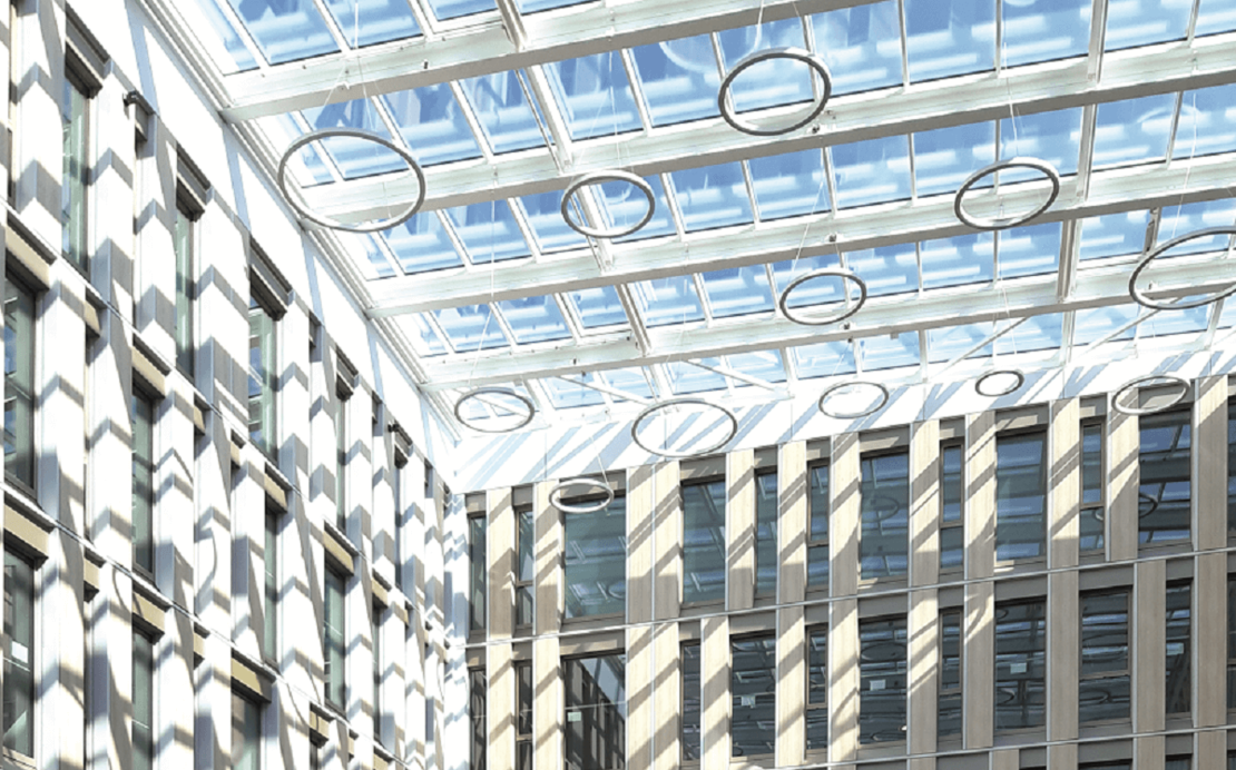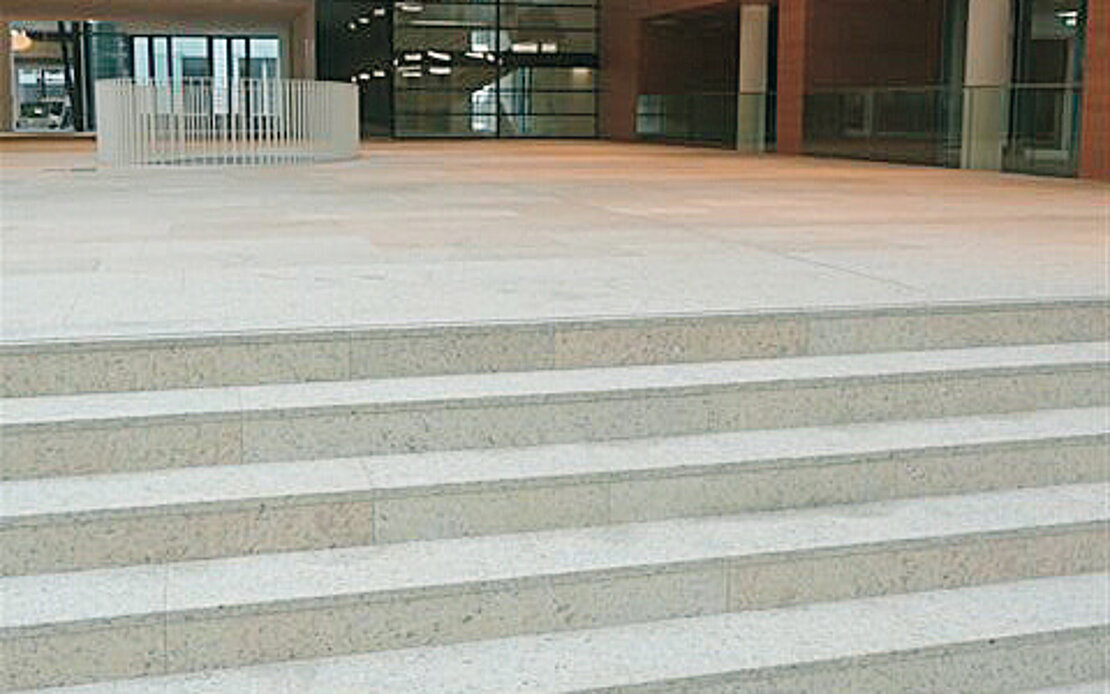 De inkomhal en de lobby zijn ontworpen met Semi Regio kalksteen. Het oppervlak van meer dan 700 m² werd eerst geslepen en dan gereinigd met Lithofin ASR en Lithofin MN Vuiloplosser.