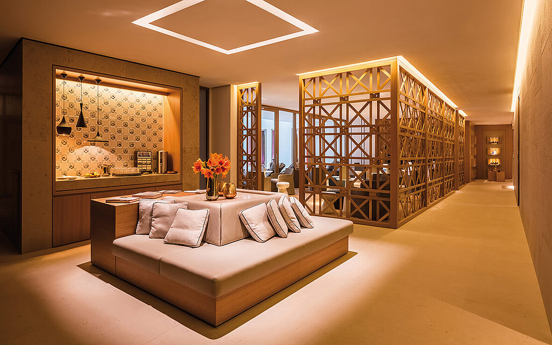 Lithofin-producten worden regelmatig gebruikt voor de tegels en oppervlakken van natuursteen om de bijzondere materialen te onderhouden op een manier die de waarde ervan op lange termijn behoudt. Kleine oppervlakken en tafels worden gereinigd met Lithofin MN Easy-Clean. Lithofin MN Wash & Clean wordt regelmatig gebruikt voor het dweilen van de vloeren in de bar, het restaurant en de lobby. Voor de jaarlijkse basisreiniging of dieper liggende vlekken in de natuursteen poriën biedt Lithofin MN Vuiloplosser een snelle en betrouwbare oplossing.