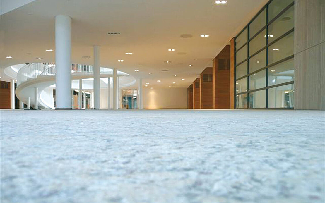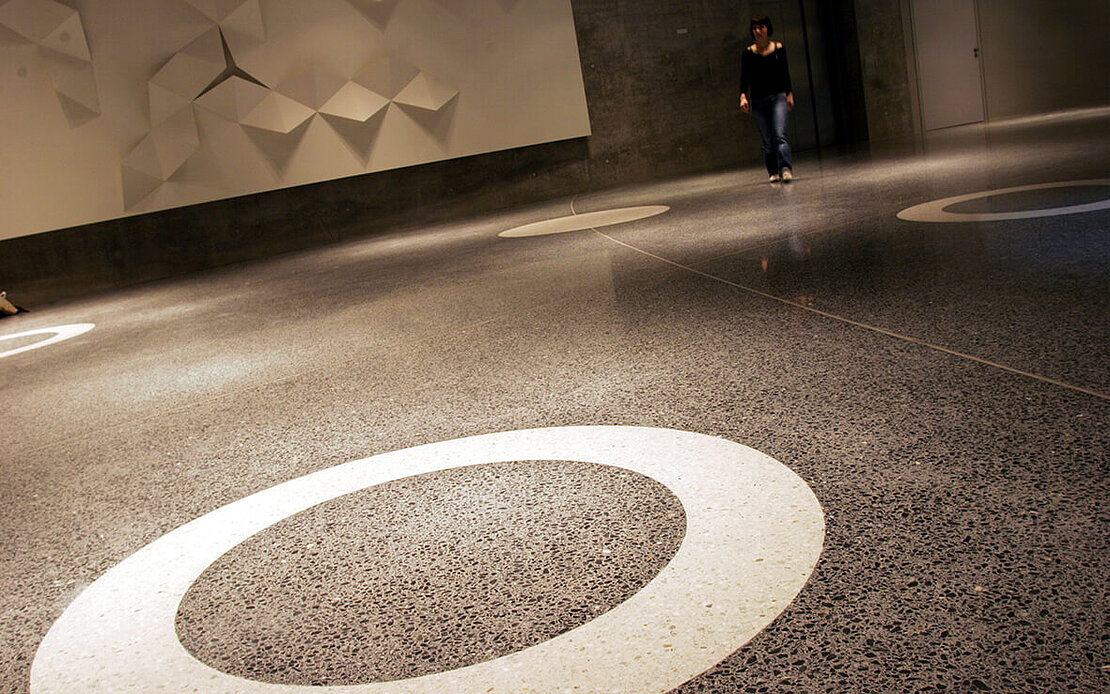 Een totaal van 2.000 m² van de tentoonstellingsruimte ,traphallen en de kantoorruimte zijn afgewerkt in Terraplan, een soort terrazzo. Lithofin MPP werd gebruikt om het oppervlak tot hoogglans te polijsten. De eindbehandeling met Lithofin MN Vlekstopmaakt het oppervlak olie- en wateratstotend en onderhoudsvriendelijk.