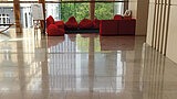Lithofin MPP werd gebruikt om het oppervlak tot hoogglans te polijsten. De eindbehandeling met Lithofin MN Vlekstop maakt het oppervlak olie- en wateratstotend en onderhoudsvriendelijk.