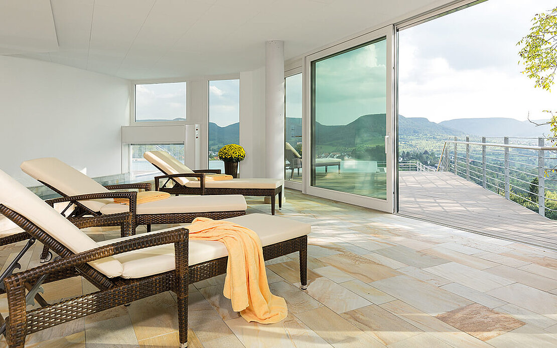 Gelegen op de zonnige flank van de zogenaamde Hausberg in Reutlingen biedt het Achalm Hotel & Restaurant een prachtig panorama van het Swabisch platteland. De inkm, ontbijtruimte, spa en zwembad zijn allemaal afgewerkt in ruwe kwartsiet. Badkamers en kleedkamers zijn uitgevoerd in Jura kalksteen en Nero Assoluto gabbro.