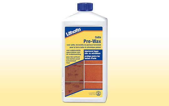 Voorimpregnering voor betere bescherming tegen olie- en vetvlekken. Wordt vlak voor de eindbehandeling met Lithofin Cotto Wax-Finish opgebracht.