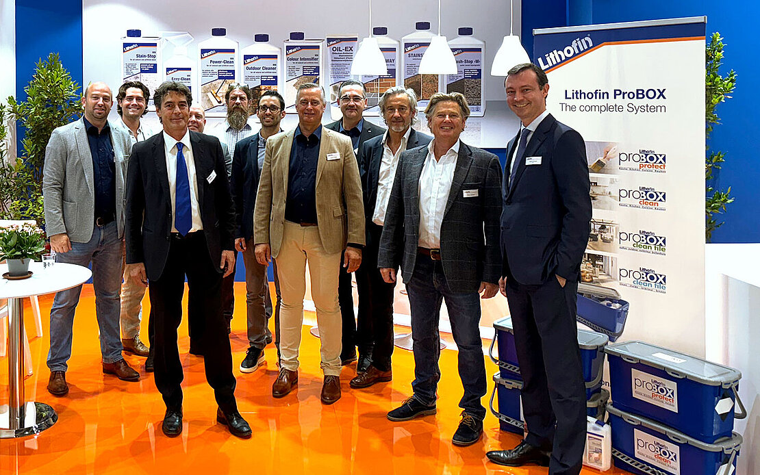 De focus lag op het Lithofin systeem voor reinigen, beschermen en onderhouden, dat met de vier verschillende Lithofin ProBoxen voor elke gebruiker de ideale oplossing biedt.
