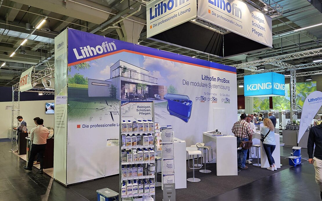 Het was ook de perfecte gelegenheid voor Lithofin om zich voor te stellen aan bestaande en potentiële klanten en om interessante gesprekken te voeren en ideeën uit te wisselen in een aangename sfeer. Op de stand van Lithofin draaide alles rond de juiste reiniging en verzorging en informatie over de optimale beschermende behandeling van natuursteen, kunststeen, terrazzo en nog veel meer. Het team stelde ook het innovatieve ProBox-systeem voor.